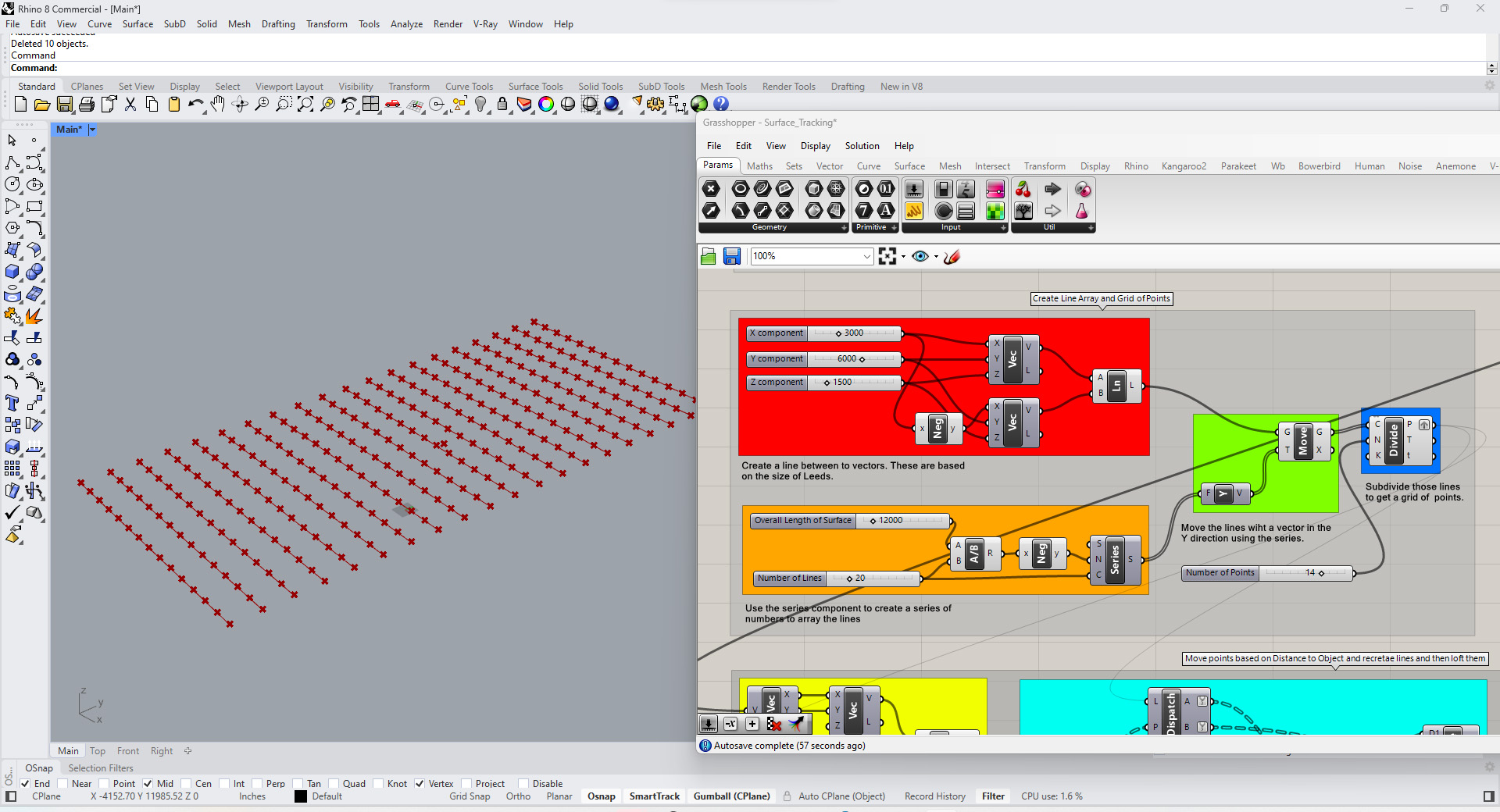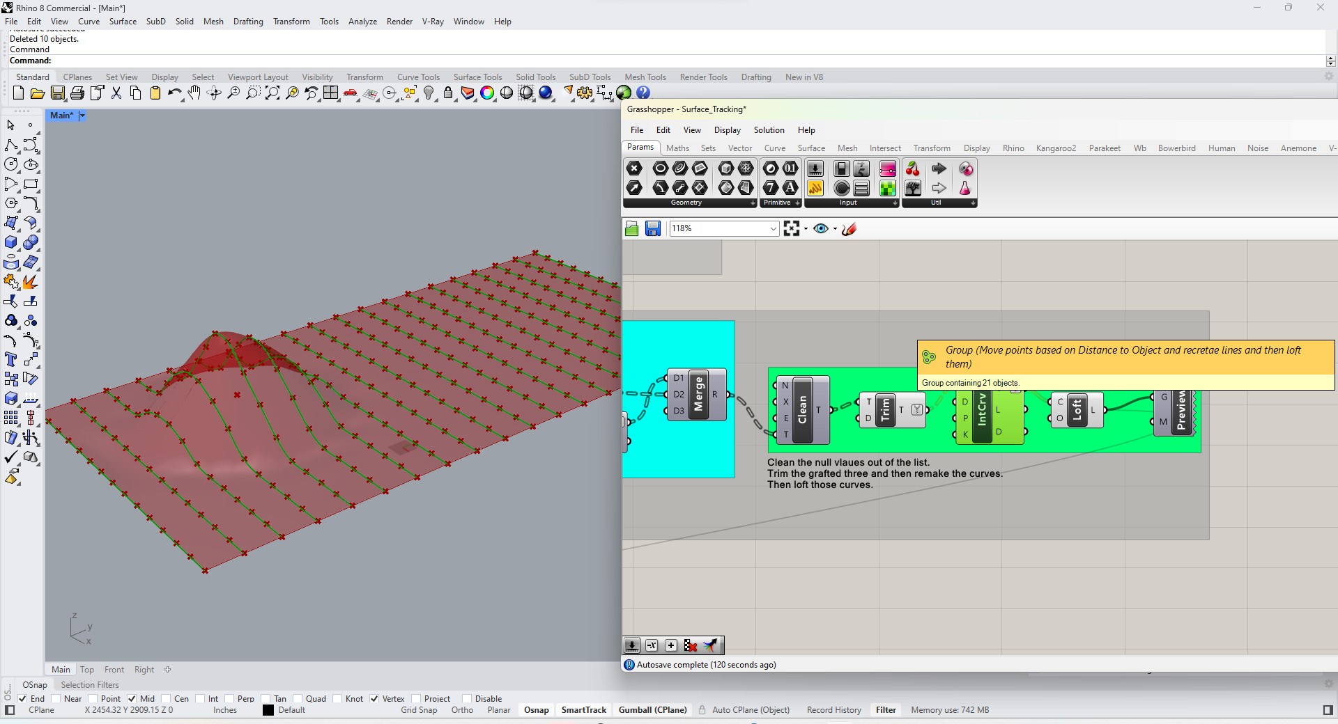3. Be sure to keep the branch structure of the new points. This will allow you to make a set of curves with the points. Then you can loft those curves to create a surface.