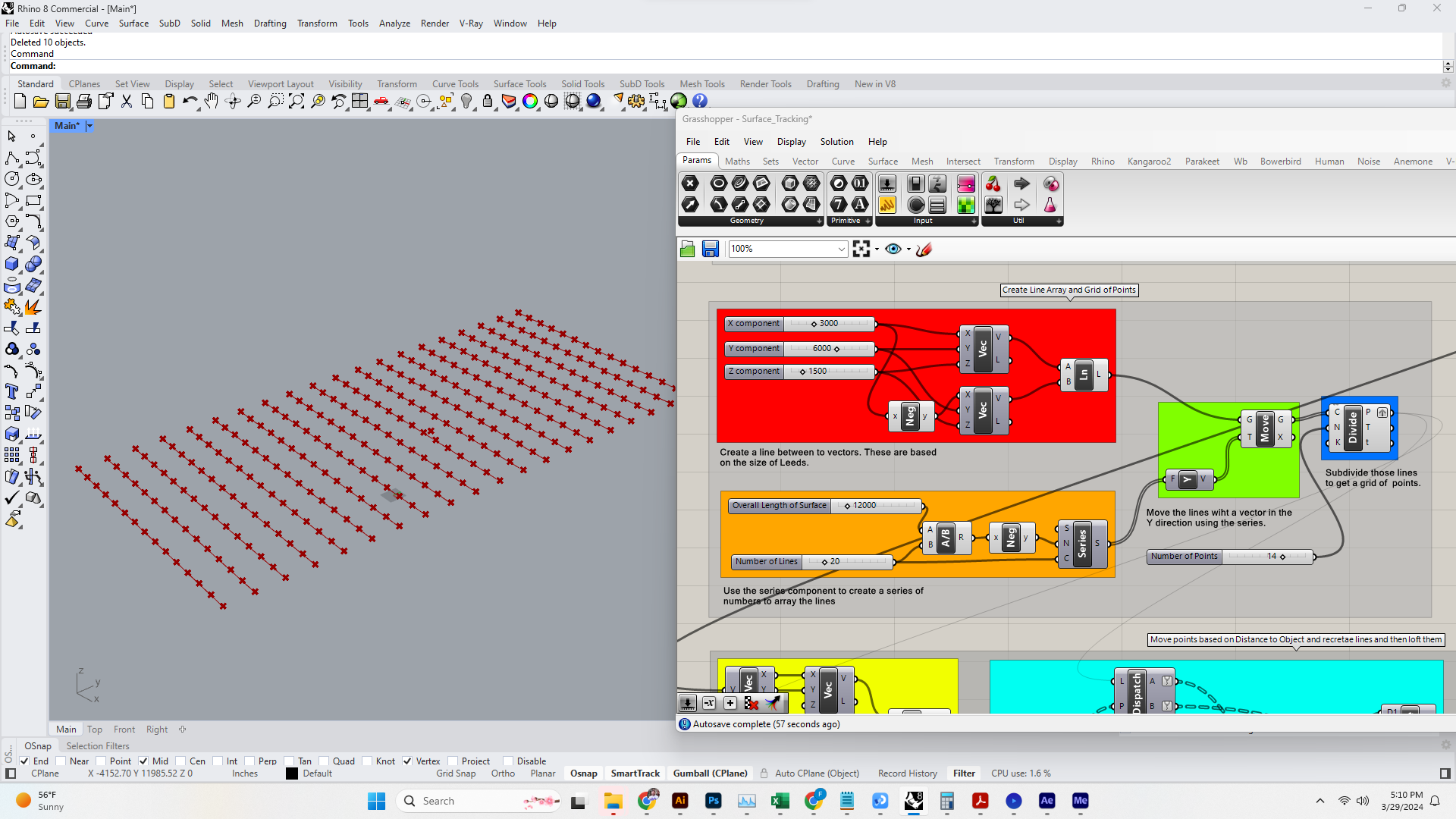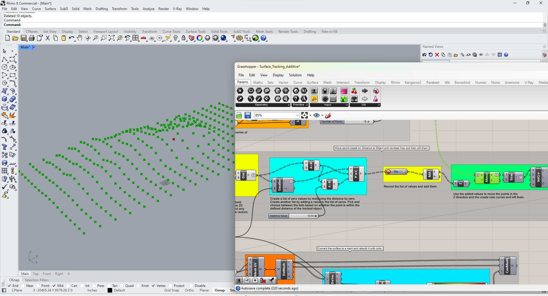 3. Same as the previous definition: Be sure to keep the branch structure of the new points. This will allow you to make a set of curves with the points. Then you can loft those curves to create a surface.